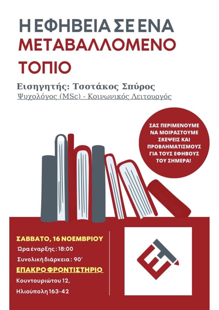 «Η εφηβεία είναι εξ ορισμού ένα στάδιο κορυφαίων αλλαγών κατά την πορεία της ανάπτυξης του ανθρώπου. Οι αλλαγές επισυμβαίνουν τόσο στο …